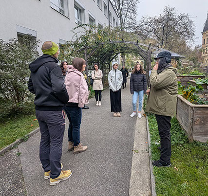 Die Greenpeers stellen ihre Aktivitäten im Schulgarten vor. Sie bieten Kinderpunsch an mit der Bitte um freiwillige Spenden für ihre Nachhaltigkeitsaktivitäten im neuen Schuljahr. Der Schulgarten wird präsentiert.